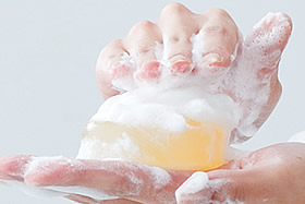 そして、透明石鹸の30%ほどが保湿剤になっていますので、さっぱりした洗い上がりなのに、肌のうるおいはそのまま残すというのが、透明石鹸の特徴です。YHソープ(洗顔石鹸)の透明石鹸は、安定性・安全性の高いこだわり抜いた原料から作っています。